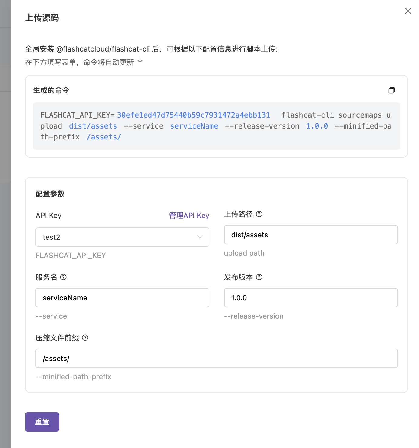 使用 Flashduty CLI 将sourcemap 文件上传至 Flashduty 服务器。
